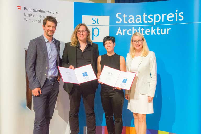 ad2 architekten sind 2018 in der Kategorie Bürobauten für das "HEADQUATER PÜSPÖK GROUP" mit dem Staatspreis für Architektur mit einer Nominierung ausgezeichnet worden. Die Bundesministerin Schrammboeck hat den Preis in einem feierlichem Akt überreicht.